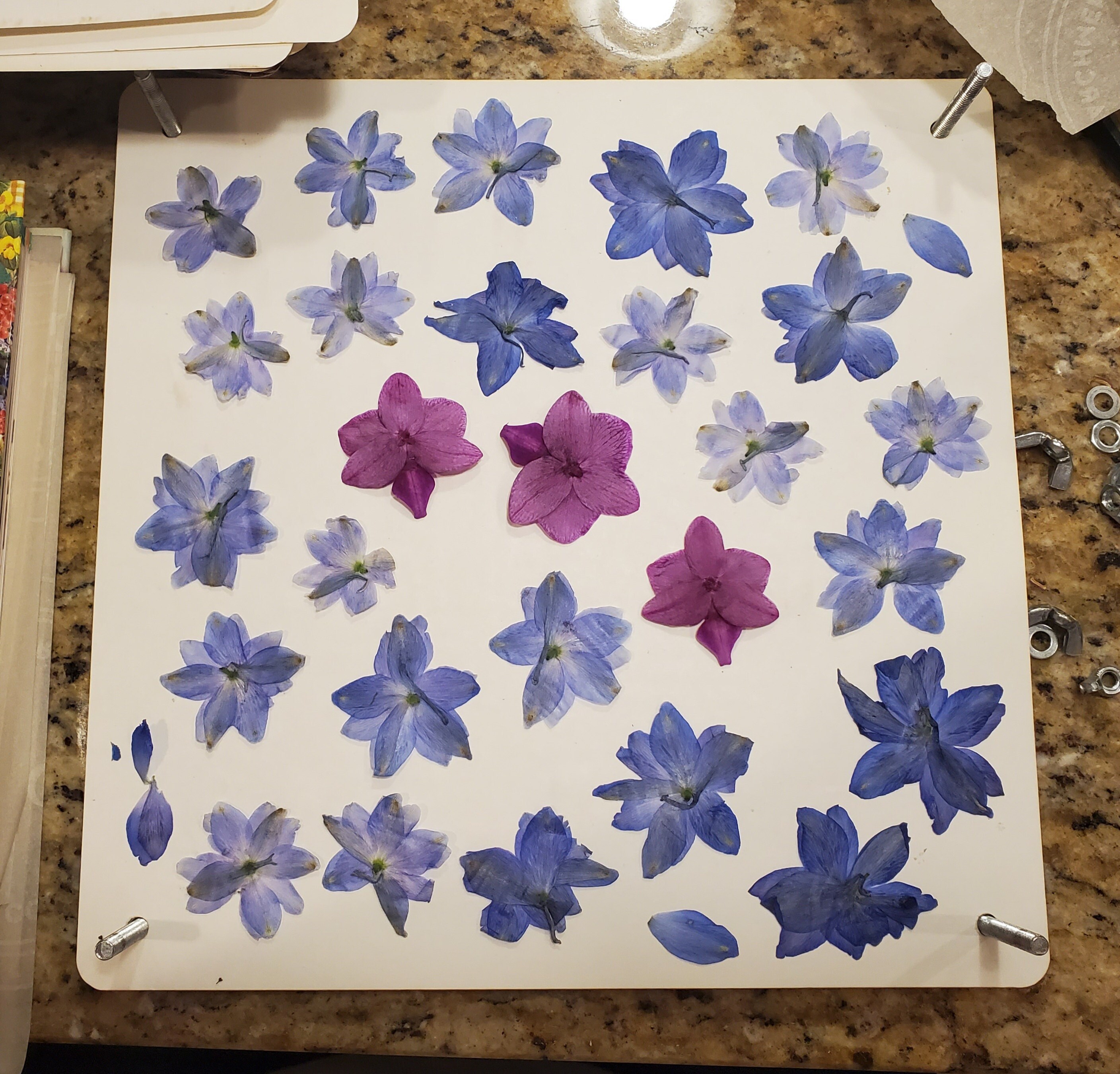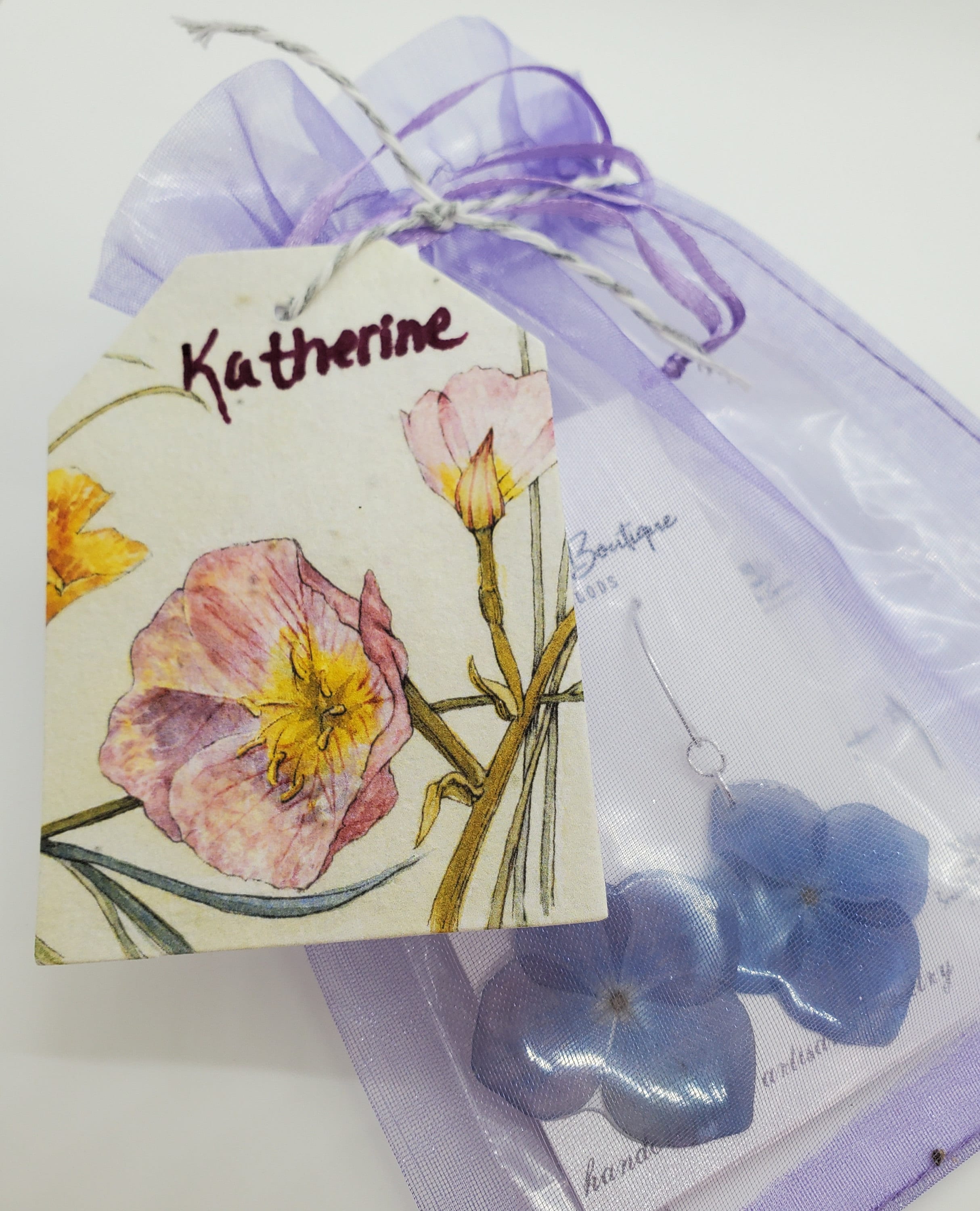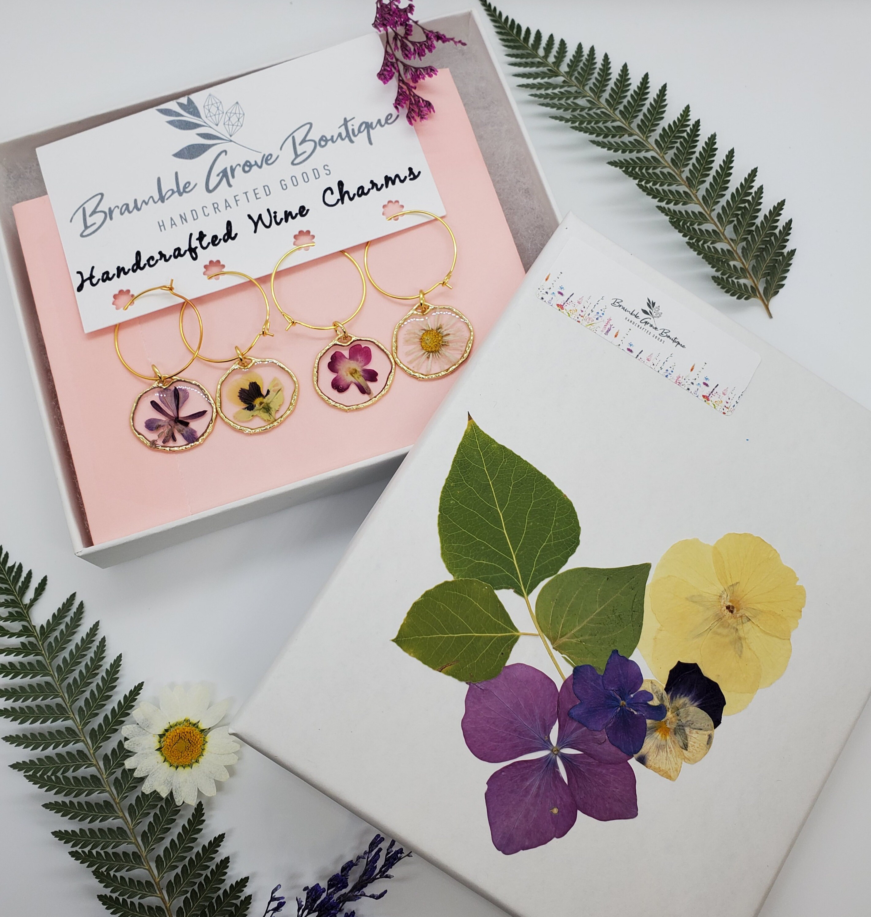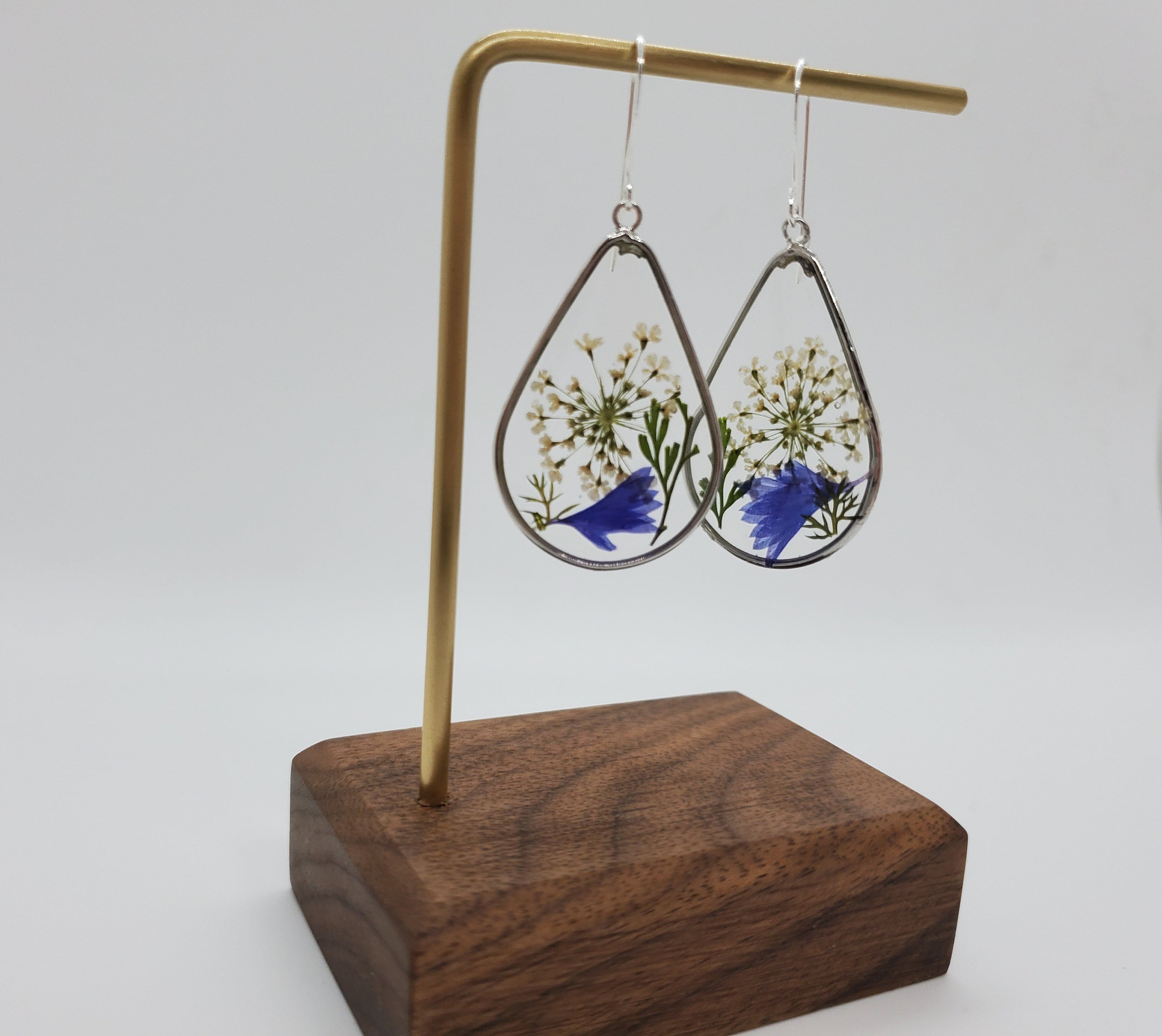 I love to press my own flowers and am constantly rotating my flower presses with new blooms. I turn these into beautiful pieces of wearable art.