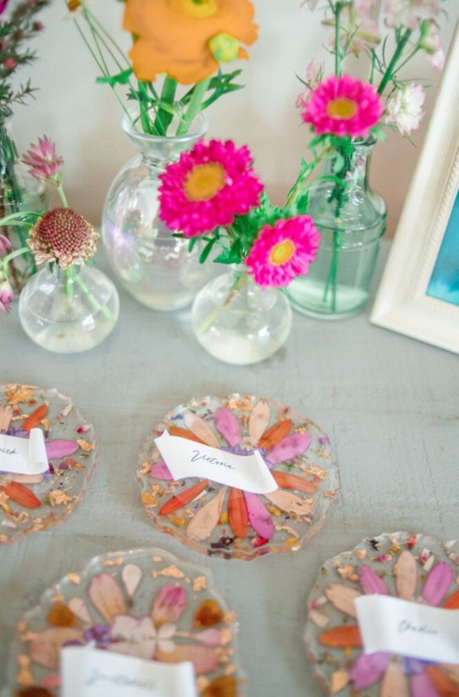 Handcrafted botanical coasters make a fabulous touch to any table for a special occasion.